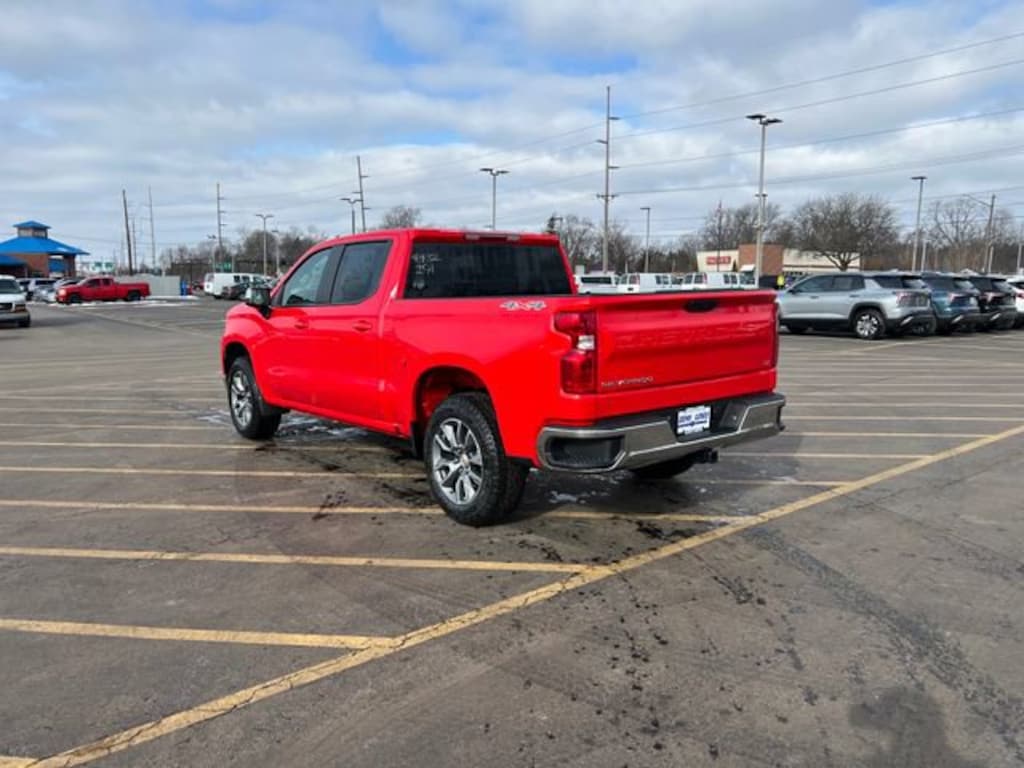 2026 Chevrolet Silverado 1500 LT (2FL) Crew Cab 4WD finished in Red Hot with Jet Black interior, powered by the responsive TurboMax engine paired with an 8-speed automatic transmission. Equipped with the All Star Edition and Convenience Package, featuring remote start, dual-zone automatic climate control, 10-way power driver seat, heated front bench seats, and a heated steering wheel. Technology highlights include a 13.4 Chevrolet Infotainment 3 Premium touchscreen with Google built-in, wireless Apple CarPlay & Android Auto, 12.3 digital driver information display, and 120V power outlets. Additional features include 20 aluminum wheels with Grazen painted pockets, all-terrain tires, EZ Lift power lock & release tailgate, LED cargo area lighting, trailering package with hitch guidance, auto-locking rear differential, and Chevy Safety Assist. A sharp, powerful truck that blends performance, comfort, and everyday capability. Price includes: $1000 - Chevrolet Trade Assistance Bonus Cash Program. Exp. 03/02/2026 $2500 - Chevrolet Consumer Cash Program. Exp. 03/02/2026 $2500 - Chevrolet Select Market Loyalty Purchase Program. Exp. 03/02/2026 $500 - GM Bonus Cash. Exp. 03/02/2026